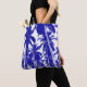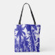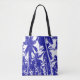 Palmen Design Schultertasche in Blau und Weiß. Das Design zeigt ein Silhouette-Effekt-Muster von Blätter.