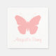 Eine Silhouette-Abbildung eines Schmetterlings in Rosa mit einem Textfeld unten, um Ihren eigenen Namen zu ändern, um eine personalisierte Party-Serviette zu machen.