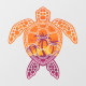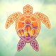 Vector Illustration einer Meeresschildkröte mit einem tropischen Sonnenuntergang-Design mit Palmen. Tags: Palme, Baum, Sonne, Sonnenuntergang, Schildkröte, Meer, tropisch, Reptil, Sonnenaufgang, Urlaub, Insel, Insel, Paradies, Utopie, Blitze, Karibbohne, Florida, Hawaii