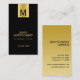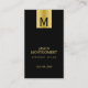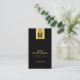 Berufliche Visitenkartenvorlage für Anwälte in Schwarz und Gold. Elegantes Design mit Monogramm. Zwei Seiten.