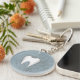 Passen Sie diesen Schlüsselanhänger der Zahnpflege mit einem modernen Molar an, der mit einer Touch silber auf abstraktem Steilhang den Zahn umreißt. Der blaue Farbton hebt den Zahn hervor, aber die Farbe kann nach Belieben geändert werden. Fügen Sie einen Namen auf der Rückseite des Schlüsselanhängers hinzu, um ihn zu personalisieren.