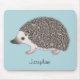 Desteis originelle Cartoon-Abbildung eines niedlichen afrikanischen Pygmäen-Igel-Tieres als Muster. Der Igel ist stehend und von der Seite abgebildet. Der Igel hat rosa Zehen und ein Lächeln auf dem Gesicht. Die Hintergrundfarbe ist hellblau, und es gibt einen personalisierbaren Textbereich für einen Namen oder einen anderen benutzerdefinierten Text.