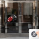 Football Ball Helmet Design Fensterheber mit anpassbarem Text, in verschiedenen Größen und Preispunkten.