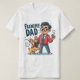 Farbenfrohe Cartoon-Gestaltung mit einem stolzen "Franzosen-Vater" mit einem Dampfstift, neben einem niedlichen und glücklichen französischen Bulldog. Ideal für Frenchie Besitzer und Hundefreunde