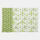 Hübsche tropische Blätter mit Kreisen, die auf grünem Hintergrund eine Reihe weißer Blätter zeigen.