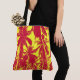 Die tropische Palmenbäume-Silhouette schafft eine trendige Design-Tasche für exotische Ferien oder den Strand. Design der roten und gelben Palmen