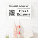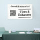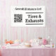 Garage Banner mit QR Code. Wartung, Reifen, Abgase und Reparatur von Fahrzeugen. Schwarz und Weiß. Es gibt verschiedene Websites, auf denen Sie QR Codes kostenlos erstellen und herunterladen können. QR Codes können für Websites, E-Mails, Wifi, Vcards und viele andere Zwecke erstellt werden. Ein Beispiel ist https://www.qr-code-generator.com
