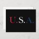 Postcard Postcard Card, gedruckt mit der US-amerikanischen Illustration Rot Weiß und Blau Schriftzeichen von TheFabricSeal Print on Demand Shop unter Zazzle.com #ZazzleMade https://www.zazzle.com/store/thefabricseal Alle Flaggen der Länder aus der ganzen Welt sind so schön, inklusive der für dieses Design inspirierten Fahne aus den USA mit wunderschönen Rot-, Weiß- und Blautönen auf kühlem schwarzem Hintergrund. In unserem Shop finden Sie auch die US Flagge-amerikanischen Flaggen-Design-Auswahl Produkte mit schwarz und weiß Hintergrundfarbe. Karo sie raus.