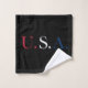 Waschtuchdekorative Badezimmerausstattung und Zuhause-Dekoaccessoires, bedruckt mit U.S.A. Red White and Blue Lettering Design Illustration von TheFabricSeal Print on Demand Shop unter Zazzle.com #ZazzleMade https://www.zazzle.com/store/thefabricseal Alle Flaggen der Länder der Welt sind so schön, inklusive der Fahne, die für dieses Design von den USA und Team U.S.A. inspiriert wurde eine kühn ebonierte schwarze Hintergrundfarbe. In unserem Shop finden Sie auch die US Flagge-amerikanischen Flaggen-Design-Auswahl Produkte mit schwarz und weiß Hintergrundfarbe. Karo sie raus.