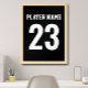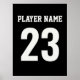 Feiern Sie Ihren Lieblingsspieler mit diesem beeindruckenden Design, das wie die Rückseite eines Sportjersey aussieht. Personalisieren Sie Ihre Daten mit einem Vor- oder Nachnamen und einer Nummer. Dieses Poster ist perfekt für Sportler und eignet sich ideal für Kinder und Jugendliche, Spielzimmer oder Grotten. Der fett schwarz-weiße Kontrast sorgt dafür, dass er sich als Statement-Stück hervorhebt. Fügen Sie Ihrer Sammlung eine Touch sportlichen Flairs hinzu. Die Farben können so angepasst werden, dass sie sich mit dem Team oder der Einrichtung abstimmen.