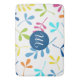 Silhouette-Illustrationen in mehrfarbigen Oberflächenmustern aus Grün, Blues, Gelb, Rosa und Orange auf weißem Hintergrund, mit anfänglichem Zentrum zum Personalisieren.