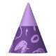 Dieses Party ist ein lustiges Design, das auf kreisförmigen Linien, künstlerischen Flecken und flachen Polka-Punkten in lila auf einem lila Hintergrund basiert. Der obere Teil ist die gleiche Farbe wie der Druck.