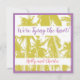 Hochzeitseinladung mit goldenen Palmen in einem tropischen Design. Einladungen für Hochzeiten am Strand.