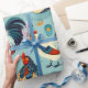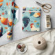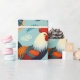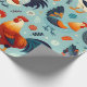 Hühner und Röster Nahtloses Muster. Bauerntiere; Roster und Hen Graphic Design. Weiß, blau, rot und orange.