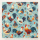 Hühner und Röster Nahtloses Muster. Bauerntiere; Roster und Hen Graphic Design. Weiß, blau, rot und orange.