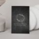 Ein handgezeichnet Drehbuch in einem Rundmuster wird zu einem unkonventionellen, modernen und abstrakten Logo auf diesem beruflichen Visitenkartendesign. Ihr Name oder Firmenname basiert auf einem minimalen Schriftart-Set auf einem schwarz gekratzten Metallhintergrund. Originale Kunst und Design © 1201AM Design Studio | www.1201am.com