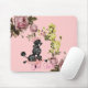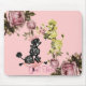Niedliche Designerpudel-Mausunterlage entwarf für Sie durch die Vintage Meerjungfrau. Ein Gespräch des kleinen Mädchens im Garten…. Vintages Bild.