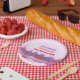 Personalisierte rosa Papierplatte mit Kurvenfarbe