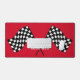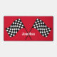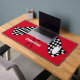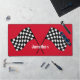 Checked Flag Desk Mat, mit anpassbarem Text und Hintergrundfarbe.