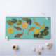 Koi schwimmt zwischen grünen Lilypaden mit gelben Blüten. Gelber, orangefarbener und brauner Fisch. Aus origineller Seidenmalerei von Susan Lilly. (Lilikai)