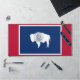 Wyoming flag desk mat, Western pride office accessory, American bison desk décor, patriotic workspace protector, Cowboy State desk pad, red white blue flag mat, symbolic state emblem accessory, cultural identity desk cover, regional pride office décor, heritage themed work surface, strong and stylish desk protector, expressive USA themed mat, modern Western design desk gear, durable and elegant desk item, bold frontier inspired accessory, high quality printed flag mat, decorative and functional desk cover, unique state pride desk décor, American West symbolic workspace item, patriotic and practical desk accessory.