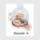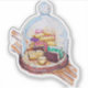 Unter einer Glaskuppel, die sich auf einem Holzfußboden befindet, wird eine Vielfalt an bunten und köstlichen Backwaren und Kuchen präsentiert. Das Arrangement umfasst eine Auswahl an Leckereien wie Kuchen und Kuchenscheiben.