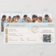 Announce your destination wedding in style with this Elegant Minimal Boarding Pass Wedding Invitation and RSVP, designed to look like a modern airplane ticket while maintaining a clean, sophisticated aesthetic. Perfect for travel-themed or destination weddings, this unique invitation presents your wedding details in a realistic boarding pass layout your guests will love. The design features a sleek minimalist format with faux gold airplane accents, stamp-style seal details, and a softly faded world map background for a refined travel-inspired look. A convenient QR code RSVP runs along the side of the boarding pass, allowing guests to easily scan and respond — combining modern functionality with stylish design. The reverse side features space to add five photos, accented with a cute heart and airplane design to create a personalized keepsake your guests will treasure long after the celebration. Easily customize colors, names, dates, and wording to match your wedding theme, whether it’s romantic, modern, or luxury destination-inspired. Perfect for destination weddings, travel lovers, aviation themes, or couples wanting something unique yet timeless, this boarding pass invitation blends elegance with a fun travel aesthetic. Design and layout by ©Moodthology Papery.