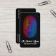 Ein Fingerabdruck unter einem schwarzen Licht auf einem schwarzen Hintergrund. Dies ist eine Visitenkarte für private Ermittler, Detektiv-Agenturen oder Sicherheitsexperten Die Karte kann leicht geändert werden (um im Namen Ihres Unternehmens, Text für Sprichwort, Name, Titel, Adresse, Telefonnummer und E-Mail-Adresse einzugeben). Sie können auch Text ganz einfach hinzufügen oder entfernen. Sie können z.B. eine Website-URL oder andere wichtige Informationen hinzufügen. Personalisieren Sie dies, um es zu Ihrem eigenen zu machen. Ähnliche Visitenkarten finden Sie unter: https://www.zazzle.com/collections/business_cards_for_security_industry-119394861492793661 Fingerabdruck-Fingerabdruck-Detektiv-Agent Privataugendetektor Cyber-Identitätsdiebstahl
