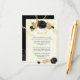 Elegante Blume in Gold und Schwarz mit wunderschönen Blätter, botanische Details, Gehäuse Karte. Die Glitzer- und Foliendetails werden simuliert