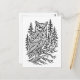 Eine fein gerenderte Hornkeule, die auf einem verdrehten Zweig steht und von Kiefern umgeben ist, in aufwändigen Linienarbeiten. Dieses dramatische Walddesign verbindet Naturrealismus mit künstlerischem Flair und macht es zu einer kühlen Ergänzung zur rustikalen oder waldreichen Dekoration.