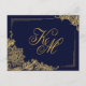 Elegante Gold-Spitzen auf marinischem Hintergrund mit monogramm formalen Unterkünften oder Details-Karte.