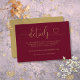 Diese elegante burgundy und goldene Herz-Drehbuch Hochzeitsdetails Gehäuse-Karte kann mit Ihren Informationen in chic Typografie personalisiert werden. Entwickelt von Thisisnotme©