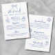 Europäische Inspirierte Blue-White-Hand-Drawn Quirky Whimsical Wedding Details Enclosure Card. Diese lustige und eigenartige Kapelle mit ihren kleinen Hochzeitsdetails ist ein spielerisches Design mit einem von Hand gezeichnet Bogen oben, umgeben von niedlichen kleinen Illustrationen wie Champagnerglas, Essgeschirr, Hochzeitskuchen, Party-perfekten Disco-Ball, "Just Married" Auto und Hochzeitsringe. Diese charmanten Akzente fügen eine helle und elegante Touch mit einem raffinierten europäischen Einfluss hinzu. Das Front-Layout kombiniert handgeschriebenes Skript mit einem handgeschriebenen Schriftart und schafft so ein lässiges und dennoch stilvolles Aussehen. Es gibt genügend Platz für alle Ihre Hochzeitsdetails, einschließlich Empfang-Informationen, Kleidungsrichtlinien, Unterkünfte, Transportmöglichkeiten und Platz für zusätzliche Informationen oder eine Hochzeitswebsite. Das Design ist vollständig anpassbar, sodass Sie den Text an Ihre Bedürfnisse anpassen können. Ideal für Paare, die gewollt haben, ihren Hochzeitsdetails Persönlichkeit und Spaß hinzuzufügen und dabei alles stilvoll behalten. Verfügbar als gedruckte Karte.