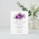 Dunkle Pflaume lila Rose und silberne Glitzer tropisches Blattwerk Hochzeitsgast Details Karten mit einem marineblau Wasserfarbe Waschrückwärts.