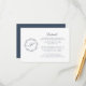 Dieses Hochzeitsdesign zeichnet sich durch ein elegantes Skript Monogramm aus, das durch einen Line Art Kranz aus indigoblauem Blattwerk auf weißem Hintergrund gerahmt wurde. Das Wort "Details" erscheint oberhalb des anpassbaren indigoblauen Textes. Die Rückseite der Karte ist solide indigo.