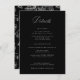 Regency Black, die Einzelheiten der Hochzeit Karte. Vintag inspiriert Chinoiserie Stil Garten Blumenmuster Rückenlehne und Koordination der weißen Typografie.