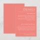 Entspannen Sie mit unserer "Pink Coral and White" Detail Enclosure Card, einem eleganten, modernen Design. Diese Karte bietet den Gästen unverzichtbare Informationen zum Empfang und zur Unterkunft und sorgt für eine nahtlose und stilvolle Feier. Personalisieren Sie es mit Ihren Hochzeitsdetails, um eine einzigartige Touch, die den Ton für eine elegante Angelegenheit, die für die nächsten Jahre geschätzt wird.