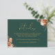 Diese elegante rustikale Blumenzimmerkarte kann mit Ihren Informationen in der schicken Goldtypografie auf einem smaragdgrünen Hintergrund personalisiert werden. Entwickelt von Thisisnotme©