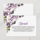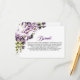 Eine lila blumengeschmückte Hochzeitskarte, die alle wichtigen Zusatzdetails enthält, die Ihre Gäste benötigen, um einen reibungslosen Ablauf Ihres besonderen Tages zu gewährleisten.