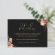 Diese elegante rustikale Blumenzimmerausweiskarte kann mit Ihren Informationen in schicker Goldtypografie auf schwarzem Hintergrund personalisiert werden. Entwickelt von Thisisnotme©