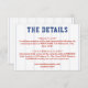 Rot weiß und blau Baseball / Softball Hochzeitsdetails Gehäuse Karte mit pinstripes. Personalisieren Sie es mit Ihren Veranstaltungsdetails. Ideal für Sportfans.