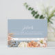 Begleiten Sie Ihre Gäste mit dieser eleganten Hochzeitsdetails-Karte mit einem romantischen Arrangement aus Aquarellpfirsich und Elfenbeinfloralen mit sanften staubigen blauen Akzenten. Ideal zum Hinzufügen Ihrer Hochzeitswebsite, UAWG oder Empfang-Informationen. Um Hilfe beim Anpassen zu erhalten, schicken Sie eine E-Mail an bpkolman@gmail.com.