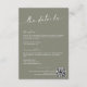 Einführung der modernen Seite Grün Skript Hochzeitsdetails Eintrittskarte! Diese schöne Karte ist ideal, um Ihre Hochzeitssuite mit einer persönlichen Touch zu versehen. Das schlichte moderne Design zeichnet sich durch einen grünen Text auf weißem Hintergrund und eine stilvolle Kalligrafie für den Titel aus. Auf der Rückseite finden Sie eine solide, schlängelgrüne Farbe. Benutzen Sie diese Umschließungskarte, um wichtige Hochzeitsdetails wie Empfang, Ort, Unterkunft und die URL Ihrer Hochzeitswebsite zu teilen. Es ist eine elegante Ergänzung, die sicherstellt, dass Ihre Gäste alle Informationen haben, die sie für Ihren besonderen Tag benötigen.
