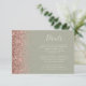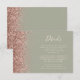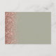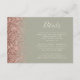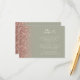 Die links Kante dieser eleganten modernen Hochzeitsdetails Gehäuse-Karte verfügt über eine Rose Gold Imitat Glitzer Design. Der anpassbare Text kombiniert Elfenbeinhandschrift, Copperplate und kursiv Schriftart auf einem schlängelgrünen Hintergrund. Auf der Rückseite ist ein passendes schlinggrün-goldenes Glitzer-Design mit Rose.