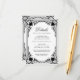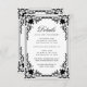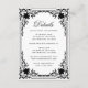 Diese elegante, schwarz-weiße Hochzeitsumrandkarte mit Vintager Luft hat einen Vintagen Rahmen mit barocken Dekorationen. Der Titel Details ist in einem eleganten kalligrafischen Skript geschrieben. Der Text und der antike Rahmen sind schwarz, der Hintergrund weiß. Sie können Details über den Empfang, die Unterkünfte, die Anfahrtsbeschreibung, die Registrierung, die Hochzeitswebsite und mehr. Der Vintage, verzierte Rahmen basiert auf einer antiken französischen Buchbinderei von Georges Mercier (1885-1939) - Madame de Maupin von Teophile Gautier, Ausgabe 1911, jetzt öffentlich zugänglich.
