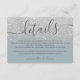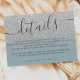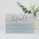 SIlver Glitzer ombre auf bearbeitbaren staubblauen Hochzeitsdetails, mit einer modernen eleganten Skriptkalligraphie.
