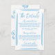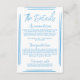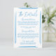 Einfache und stilvolle Retro Himmel blauen Hochzeitsgast Infodetails. Mit weißem Hintergrund und blauem handgeschriebenem Textlayout mit whimsical wordt und Vintag handgezeichnetem whimsical quirky frame . Mit handgezeichneten blühenden Mustern auf der Rückseite. Alle Informationen sind als Website, Transport, Unterkunft anpassbar. Genießen Sie es zusammen mit anderen Produkten aus dieser stilvollen, handgefertigten Retro-Hochzeitssuite.