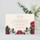 Die Botanische und florale Hochzeitsdetails-Karte von Maroon Fall, eine raffinierte Ergänzung Ihrer Hochzeitsbriefmarkensuite, die das Wesen der Herbstsaison wunderbar verkörpert.Mit viel Liebe zum Detail entworfen, bietet diese Gehege eine reiche Maronenfarbe mit faszinierenden botanischen und blumengeschmückten Motiven, die an das Blattwerk erinnern, das die Landschaft während der Hochzeit malt die Herbstmonate