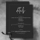 Dieses Hochzeitsdetails-Kartendesign zeichnet sich durch ein dunkles, moody-Design aus, das einfach, aber atemberaubend ist. Ein schwarzer, dunkler Holzkohle-Hintergrund ist die perfekte Leinwand für einen einfachen, weißen Text. Einzigartig und elegant, kann dieses Design für jede Jahreszeit genutzt werden. Erstellt von der einfachen Farmhouse Press.