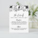 Hand gezeichnete, florale Hochzeitsdetails Umschließkarte. Diese elegante Hochzeitsdetails-Umschließkarte zeichnet sich durch ein elegantes botanisches Design aus, das von den schwarzen anemonischen Blume ganz oben geprägt ist. Die anmutigen Blumenakzente, inspiriert von Wildblumen, verleihen dem Ganzen einen zeitlosen und natürlichen Charme. Die Vorderseite verbindet eine Mischung aus handgeschriebener Schrift und einem raffinierten handgeschriebenen Schriftart und schafft ein harmonisches Gleichgewicht von Eleganz und Wärme. Die Karte bietet ausreichend Platz, um wichtige Details über Ihre Hochzeit zu erhalten, wie Empfang-Informationen, Kleidungsrichtlinien, Unterkünfte, Transport, einen Abschnitt für zusätzliche Informationen oder eine Hochzeitswebsite. Dieses Design ist vollständig anpassbar und eignet sich ideal für Paare, die eine raffinierte, naturlich inspirierte Art suchen, ihre Hochzeitsdetails zu teilen. Verfügbar als gedruckte Karte.